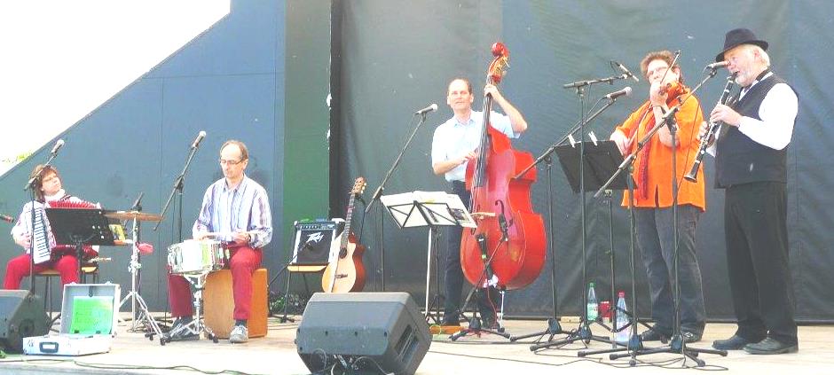 Jiddische Musik wurde und wird traditionell bei Hochzeiten gespielt. Wir waren sehr erfreut, als wir gebeten wurden, eine nicht-jüdische Hochzeit musikalisch zu begleiten. Das Paar wünschte sich jiddische Lieder und Tänze, weil ihnen die Musik gefällt und weil man dazu wunderbar tanzen kann. Es war eine sehr schöne Feier. Vielen Dank, dass wir dazu spielen durften. |