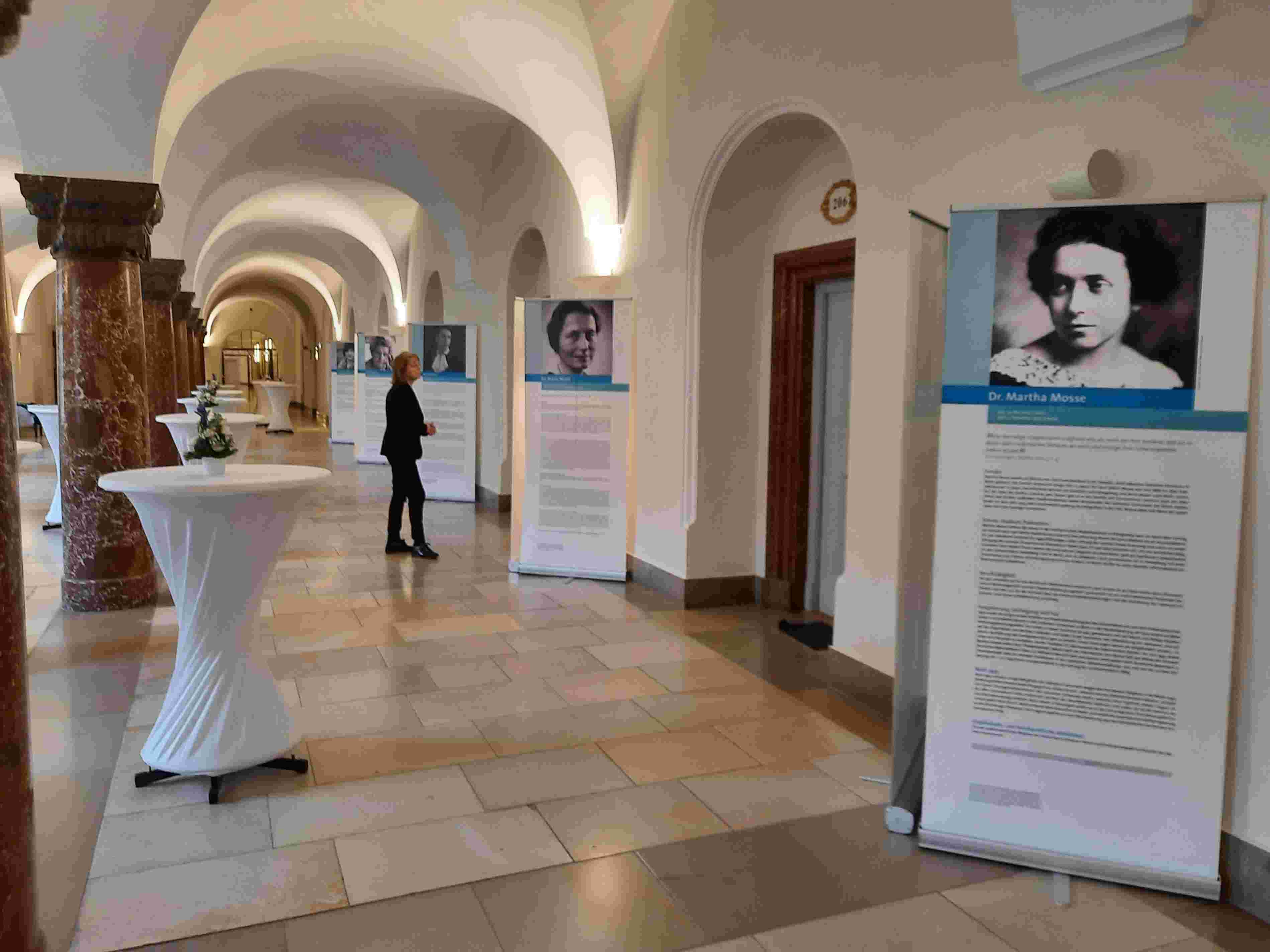 Die Eröffnung der Ausstellung "Jüdische Juristinnen" in der Säulenhalle des