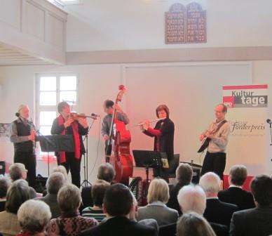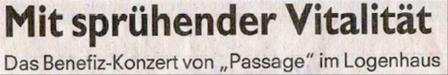 der Ansbcher Synagoge. Die Lokalzeitung schrieb am 30.9. "Rare musikalische Kostbarkeiten bot die Klezmergruppe Passage aus Nürnberg während ihres Konzertes in der Ansbacher Synagoge. |