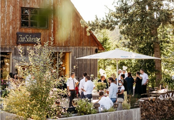 Nach eineinhalb Jahren durften wir wieder unser erstes Konzert geben. Wir spielten im Hof des Fränkischen Schweiz-Museums in Tüchersfeld, umrahmt von der wunderschönen Kulisse des Museums und des markanten Felsens. Corona-bedingt durften maximal 45 Gäste eingelassen werden. Das Konzert war ausverkauft, die Leute waren froh, wieder Live-Musik zu hören. |